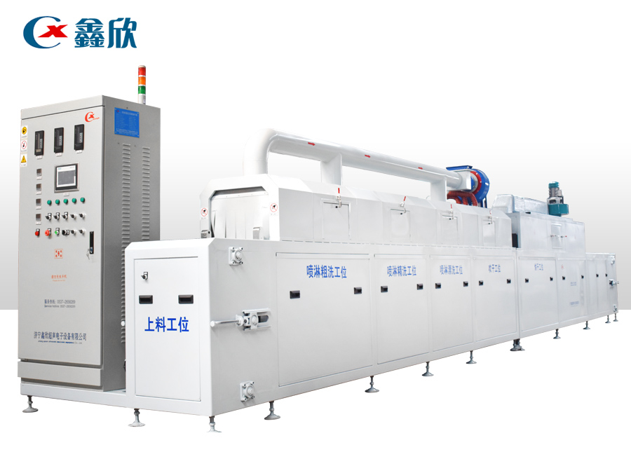 該設(shè)備有上下料網(wǎng)帶、超聲波清洗工位、噴淋漂洗工位、高壓風(fēng)切、熱風(fēng)烘干工位、溫控水加熱系統(tǒng)、風(fēng)機(jī)、溫控空氣加熱系統(tǒng)、移動式風(fēng)刀、PLC+觸摸屏控制系統(tǒng)、管路系統(tǒng)及智能電器控制系統(tǒng)等組成。自動進(jìn)排液和自動加溫系統(tǒng)完全實(shí)現(xiàn)了無人干預(yù),自動運(yùn)行,很大程度上降低了工人的勞動強(qiáng)度。先進(jìn)的霧氣處理系統(tǒng)可以將清洗時產(chǎn)生的霧氣冷凝回流,空氣經(jīng)過濾和活性炭吸附后排出。