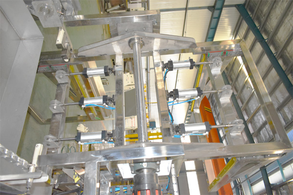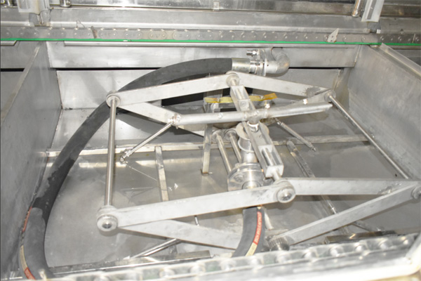 01)通過(guò)設(shè)備上面的觸摸屏設(shè)置設(shè)備運(yùn)行的各項(xiàng)參數(shù),待清洗料桶通過(guò) AGV 小車(chē)輸送到緩存支架上,由夾持裝置將工件加緊經(jīng)翻轉(zhuǎn)電機(jī)將工件旋轉(zhuǎn) 180 度,使料桶口向下置于上料工位。→(02)設(shè)備運(yùn)行裝置自動(dòng)將料桶運(yùn)行到噴淋粗洗工位,高壓噴淋粗洗工位設(shè)有桶內(nèi)壁旋轉(zhuǎn)噴頭,對(duì)桶內(nèi)壁進(jìn)行清洗。桶體外側(cè)設(shè)置頂部及側(cè)面噴頭對(duì)料桶外壁進(jìn)行清洗。工位設(shè)置探測(cè)器,工件在運(yùn)動(dòng)時(shí)噴淋工位停止工作。→(03)料桶經(jīng)過(guò)噴淋粗洗后設(shè)備運(yùn)行裝置自動(dòng)將料桶運(yùn)行到噴淋精洗工位,高壓噴淋精洗工位設(shè)有桶內(nèi)壁旋轉(zhuǎn)噴頭,對(duì)桶內(nèi)壁進(jìn)行清洗。桶體外側(cè)設(shè)置頂部及側(cè)面噴頭對(duì)料桶外壁進(jìn)行清洗。工位設(shè)置探測(cè)器,工件在運(yùn)動(dòng)時(shí)噴淋工位停止工作。→(04)噴淋精洗完畢后,料桶運(yùn)行到高壓風(fēng)切吹干工位,熱風(fēng)吹干采用高壓風(fēng)機(jī)和熱風(fēng)發(fā)生器,可以對(duì)工件進(jìn)行快速干燥。→(05)工件經(jīng)熱風(fēng)吹干完畢后運(yùn)行至下料翻轉(zhuǎn)工位。由夾持裝置將工件加緊進(jìn)行翻轉(zhuǎn),工件翻轉(zhuǎn)180度以后放置到緩存支架上由AGV小車(chē)帶動(dòng)料桶進(jìn)入干凈桶暫存區(qū)。